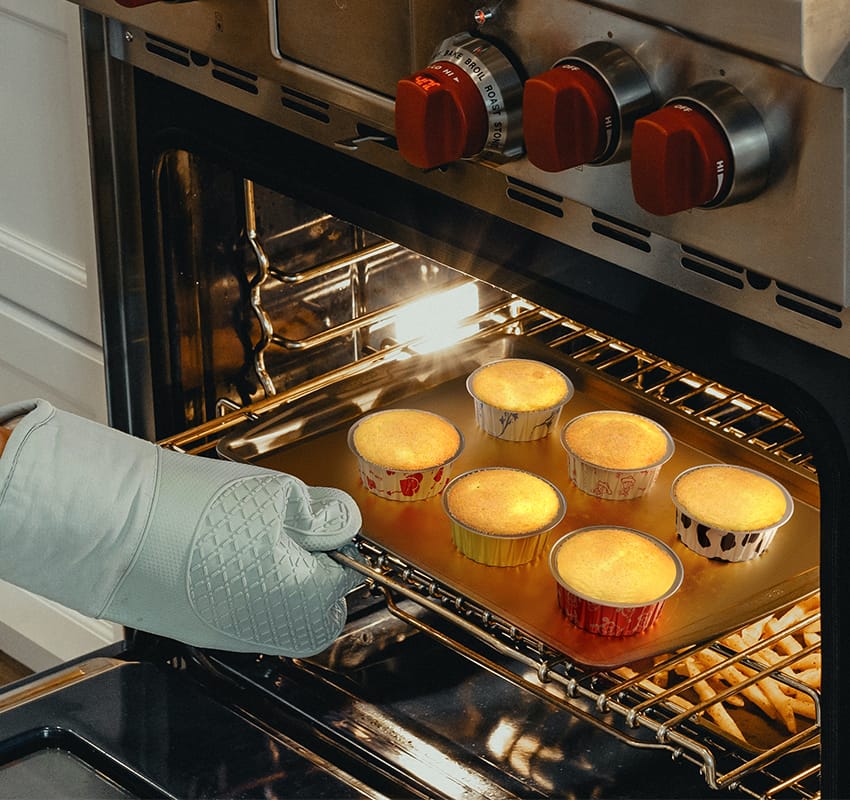 Aikou's disposable foil baking cups can be used directly in an oven. The higher heat-resistant ability makes the cake heat more evenly and won't lead to partly-burn.